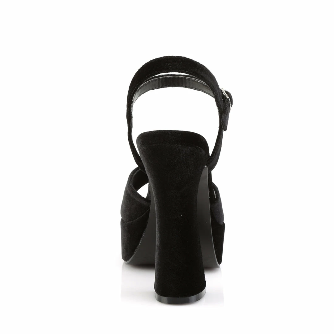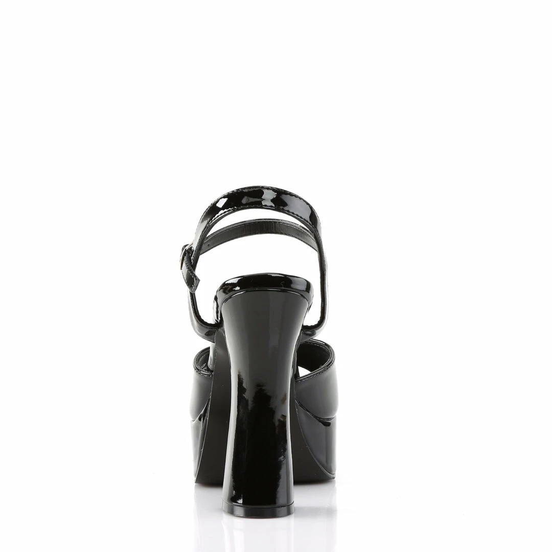 5″ (12.7mm) chunky heel, 1 3/8″ (3.5cm) platform ankle strap sandal.
