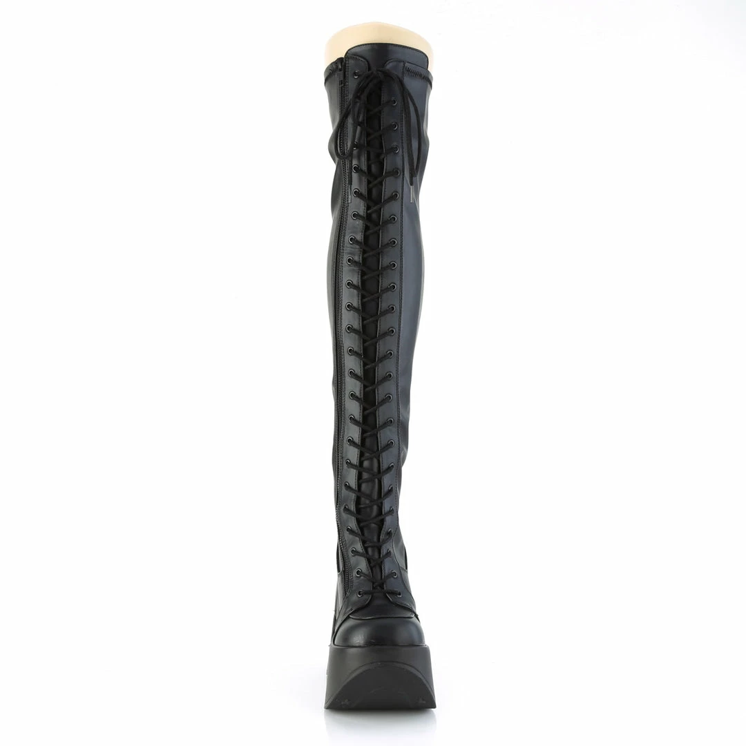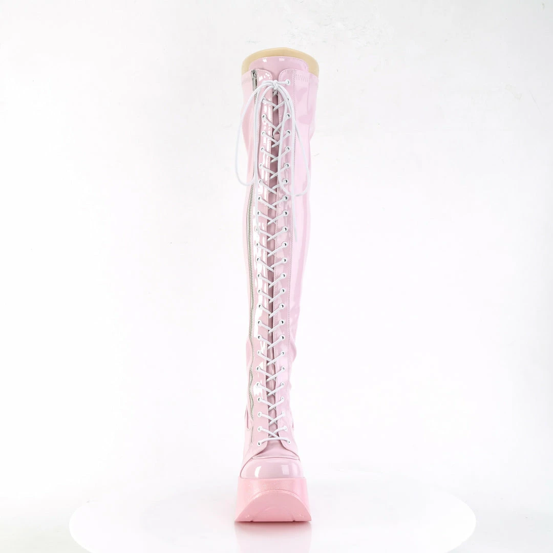 5″ (12.7mm) Star cut-out platform wedge thigh high boot with full length outside metal zip closure