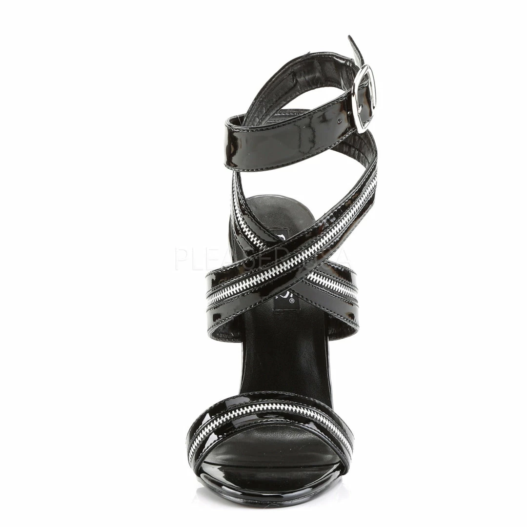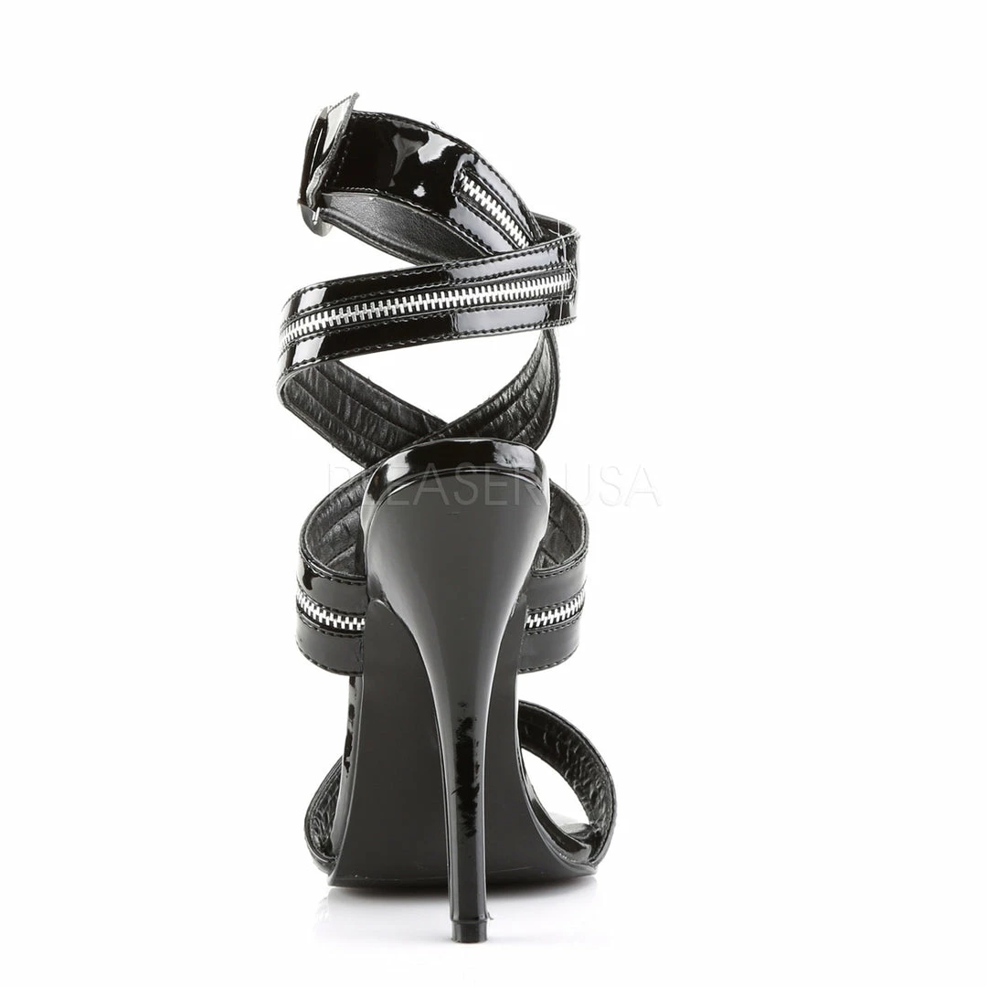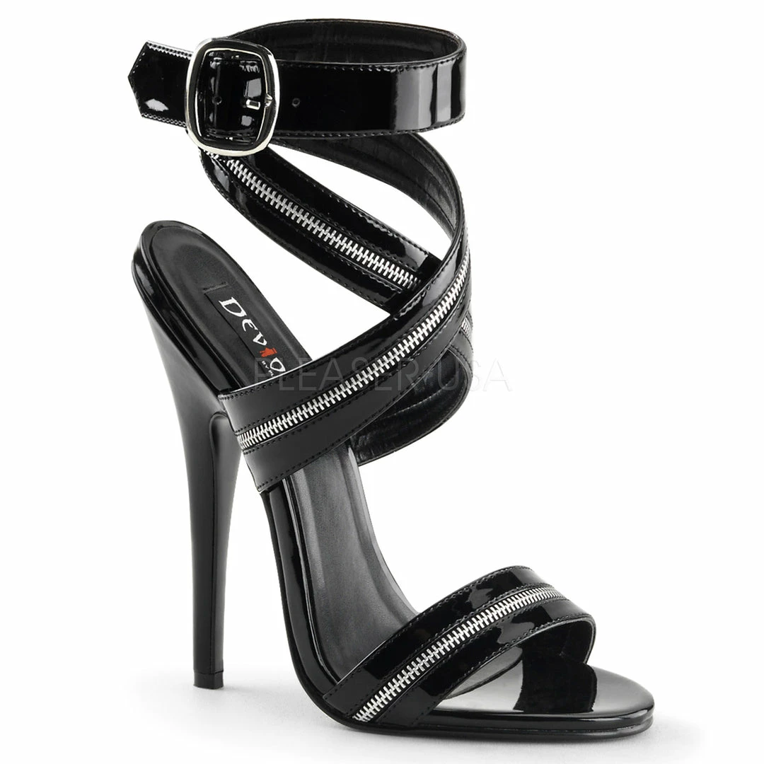 6″ (15.2cm) stiletto heel wrap around zipper inlaid ankle strap sandal.