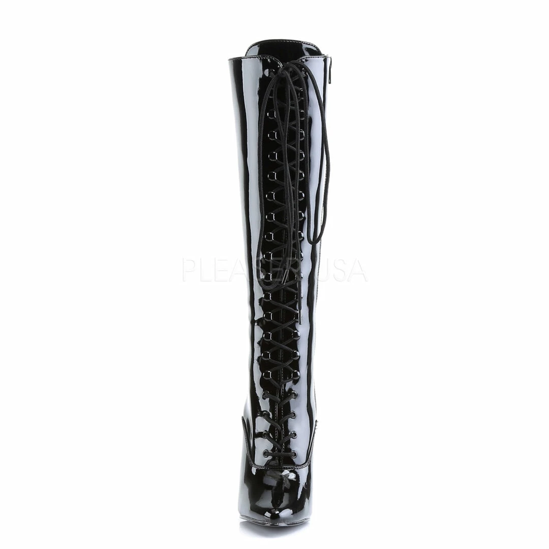 6″ (15.2cm) Stiletto heel lace-up knee boot with full inner side zipper.
