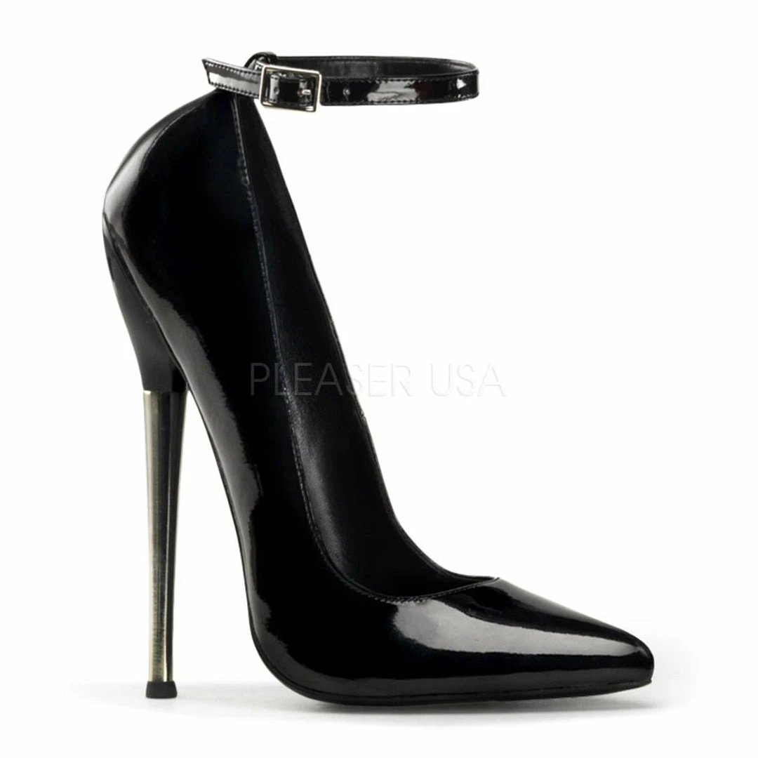 6 1/4″ (15.9cm) Solid brass heel ankle strap plain pump.