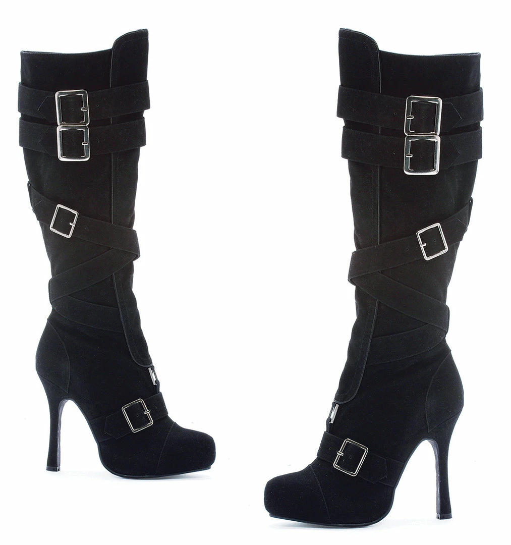 4″ Microfibre knee high boot with buckles, inside zipper.