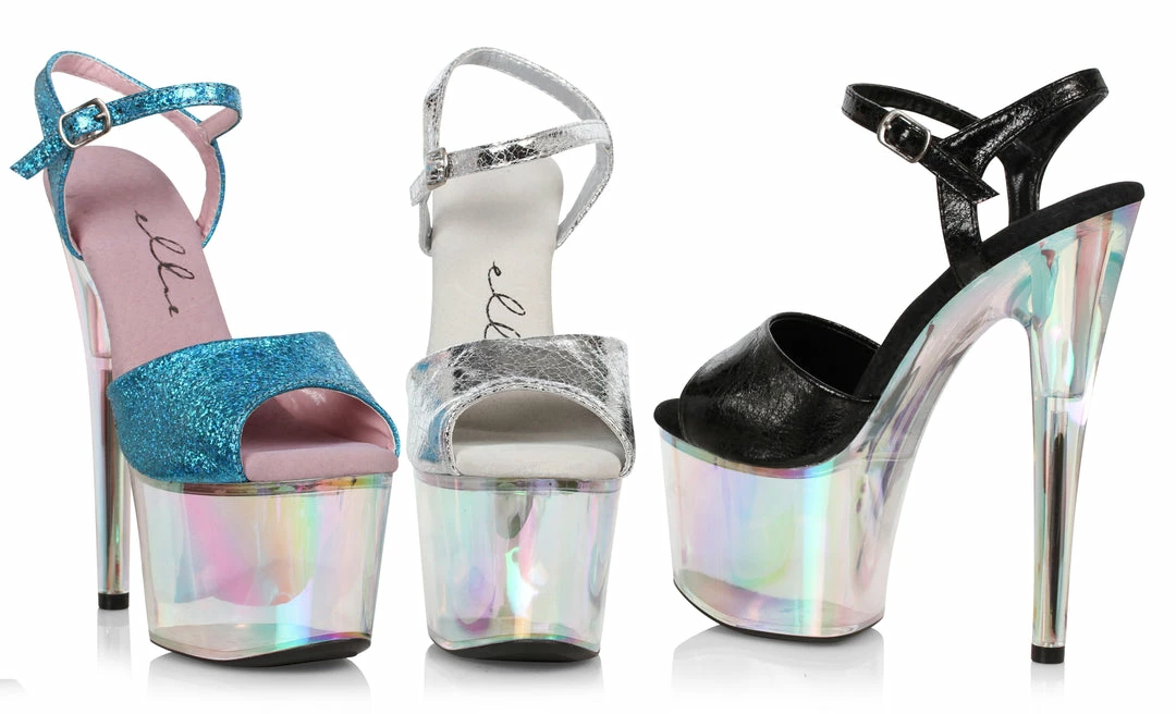 7″Β Pointed stiletto sandal with rainbow tinted platform