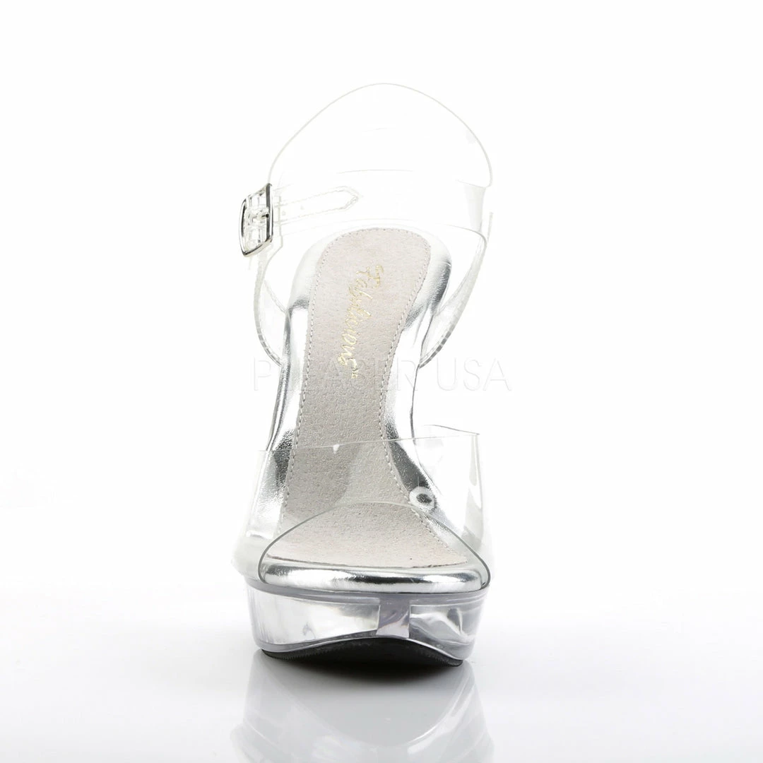 5″ (12.7cm) heel, 1″ (2.5cm) platform ankle strap sandal.