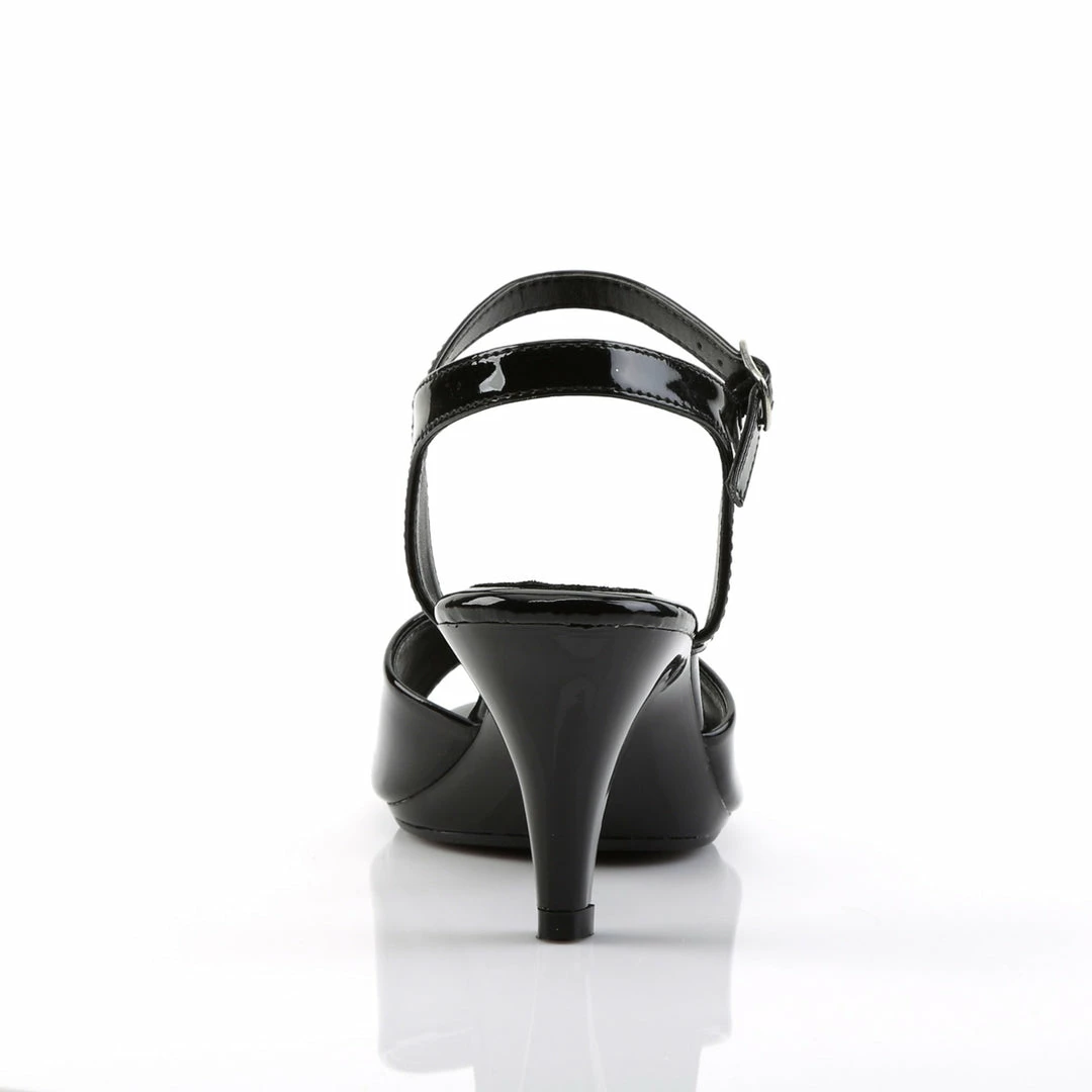 3″ (7.6cm) heel, 1/8″ (0.3cm) platform ankle strap sandal.