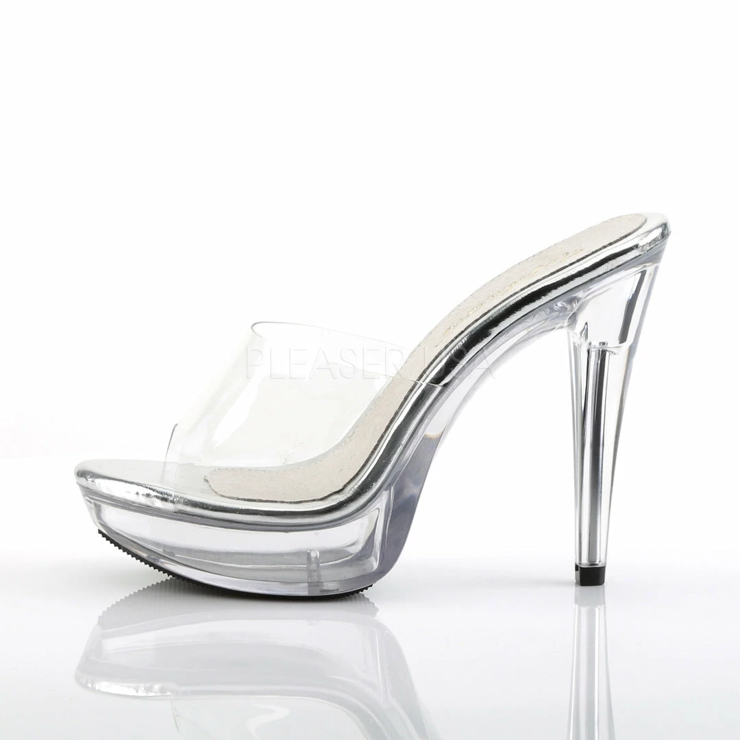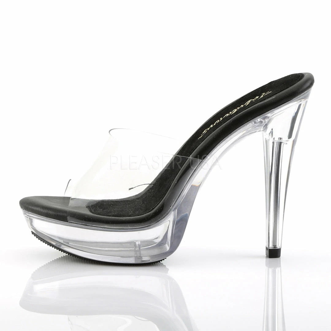 5″ (12.7cm) heel, 1″ (2.5cm) platform slide.