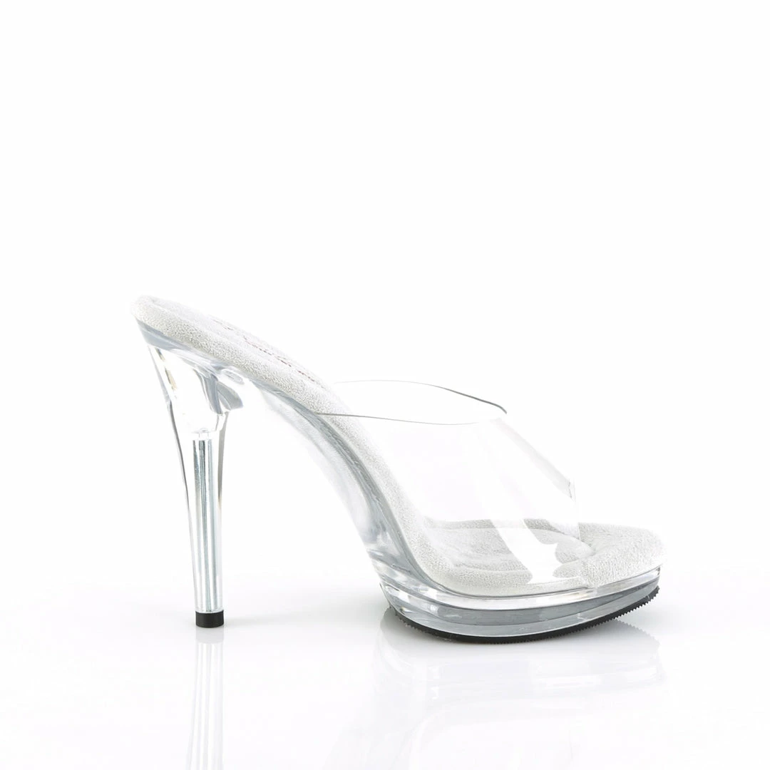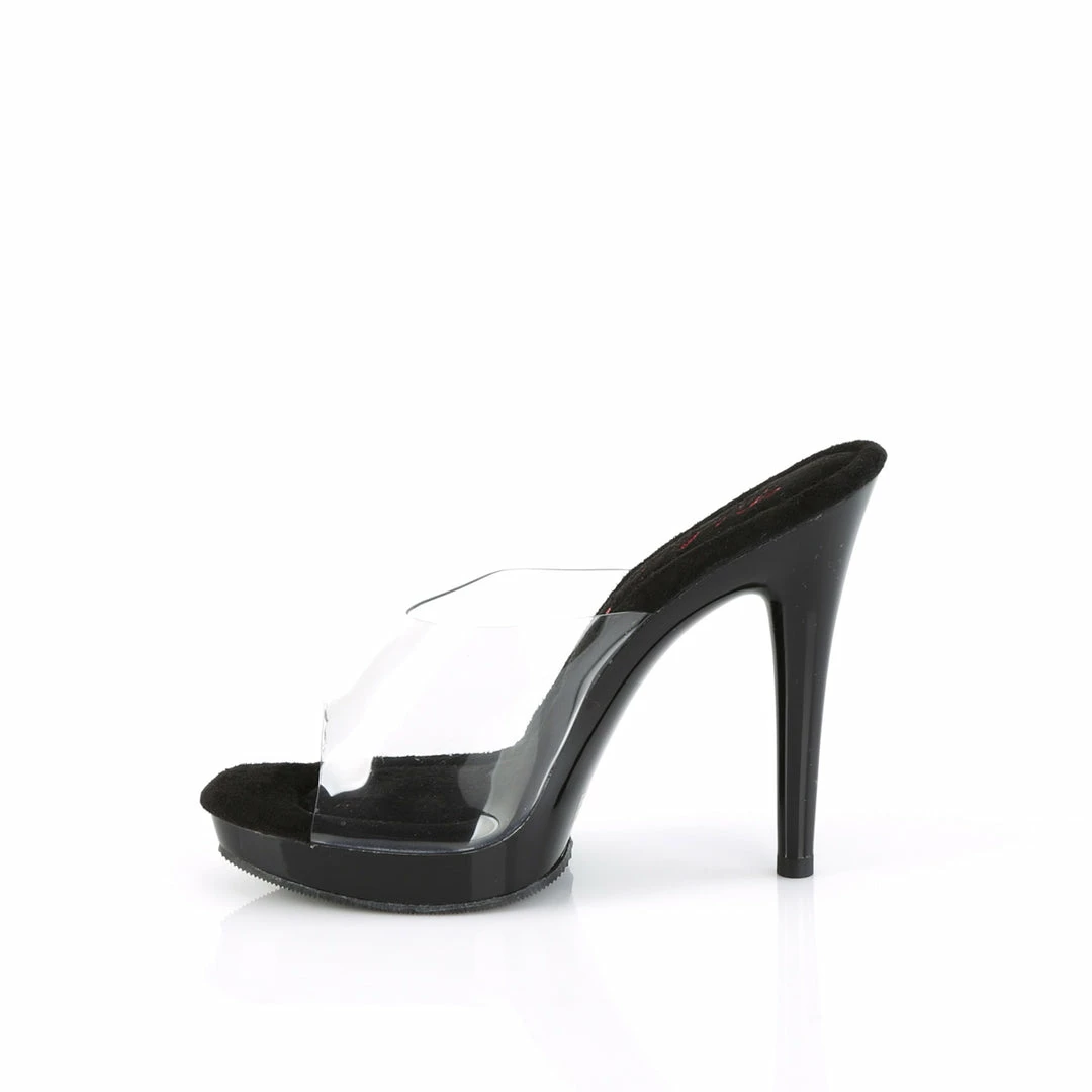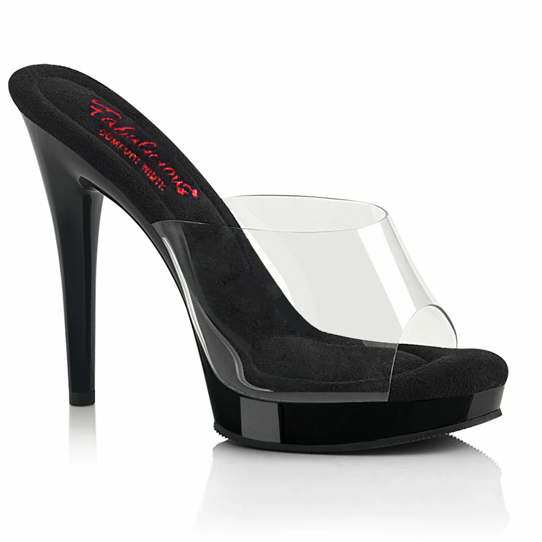 5″ (12.3cm) heel, 3/4″ (1.6cm) platform comfort width slide.