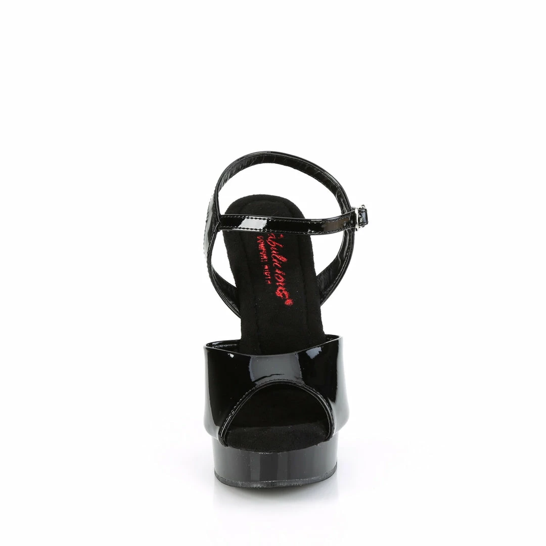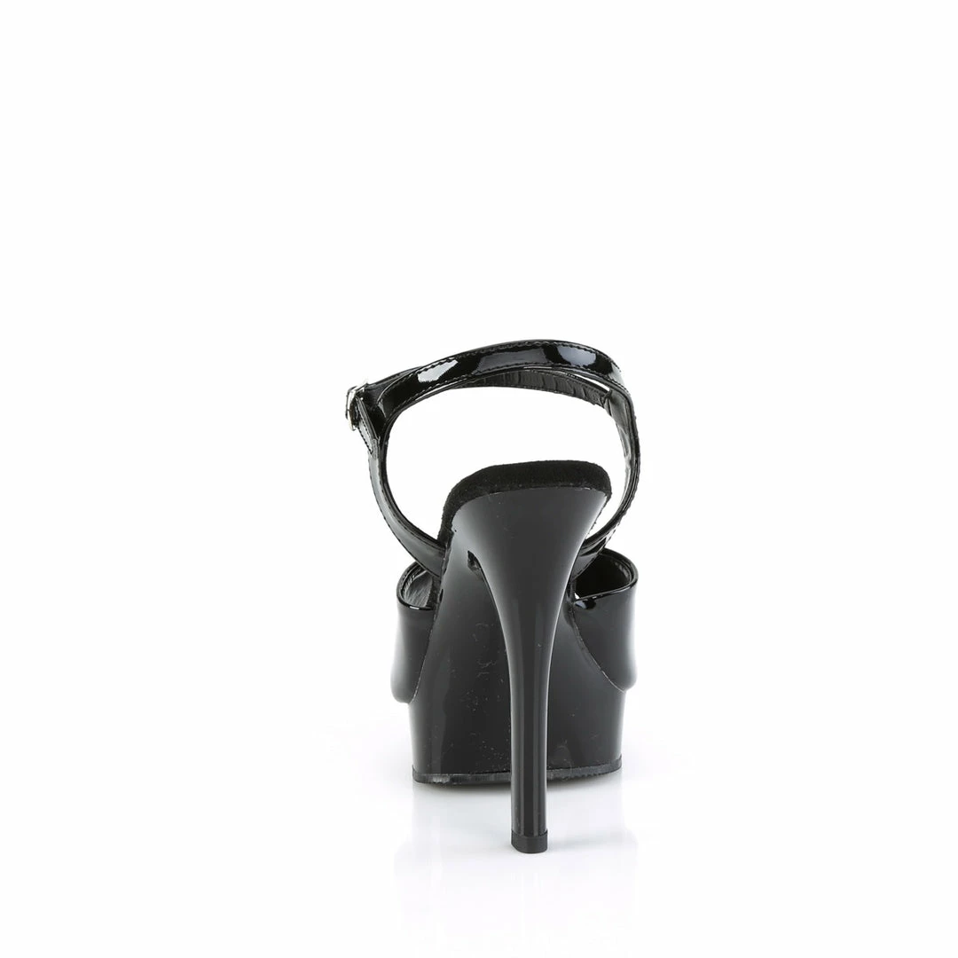 5″ (13.2cm) heel, 7/8″ (2.5cm) platform comfort width ankle strap sandal.