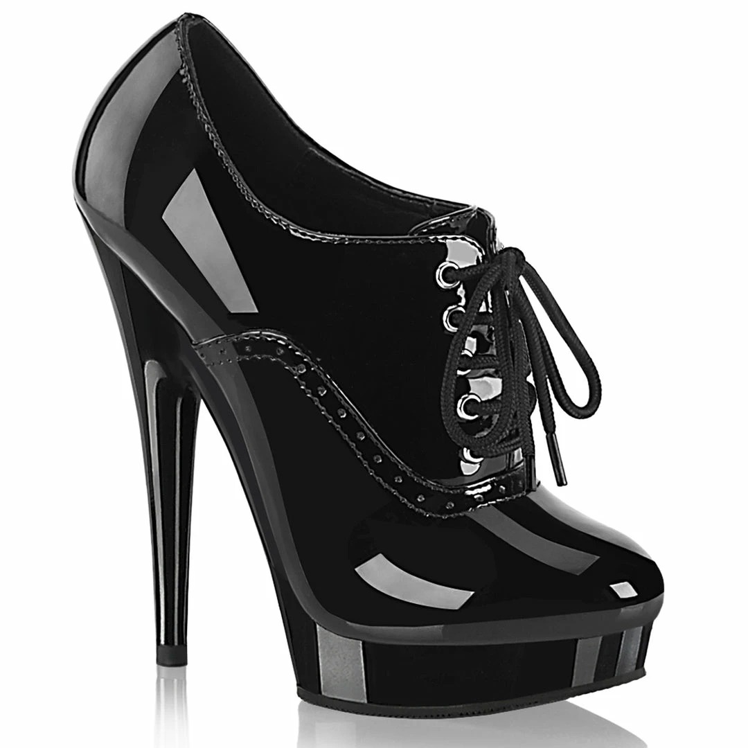 6″ (15.2cm) heel, 1″ (2.5cm) platform lace-up bootie.