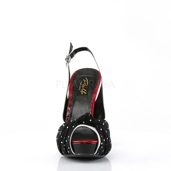 4 1/2″ (11.4cm) Heel, 1″ (2.5cm) Hidden Platform Open Toe Pump with Pleated Knot.