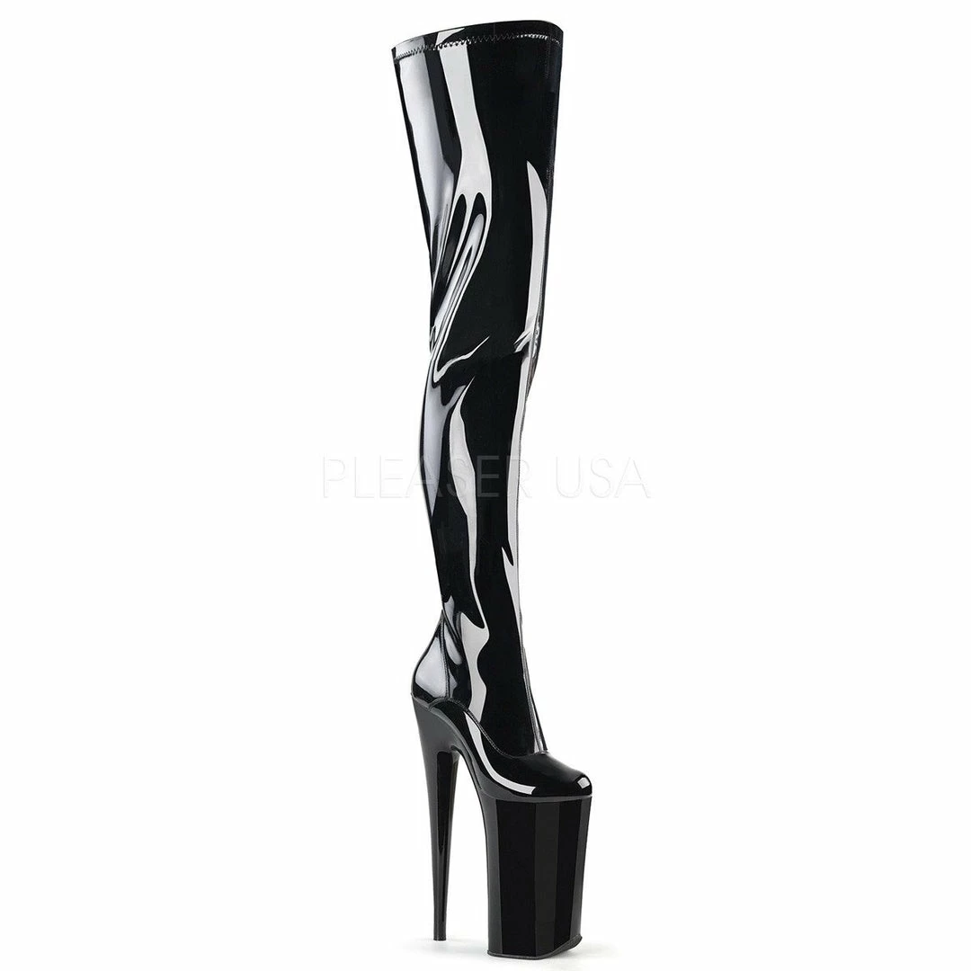 10″ (25.4cm) heel, 6 1/2″ (15.9cm) platform crotch boot with full length inside zip closure.