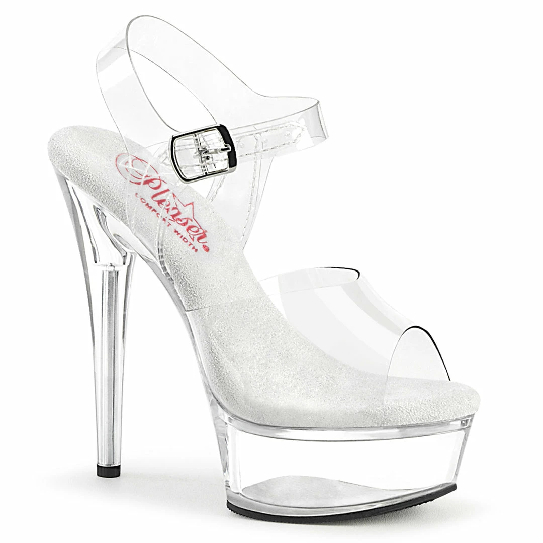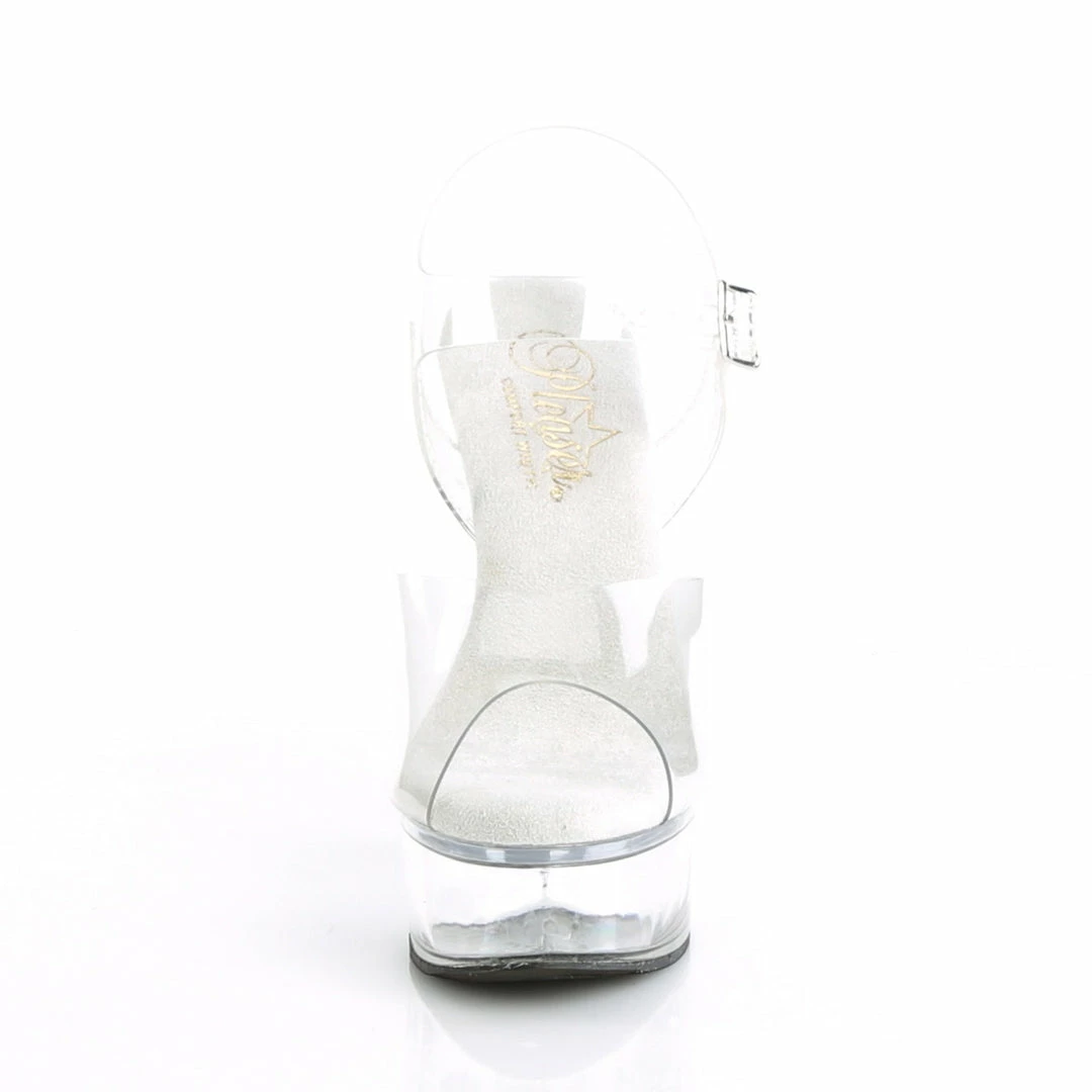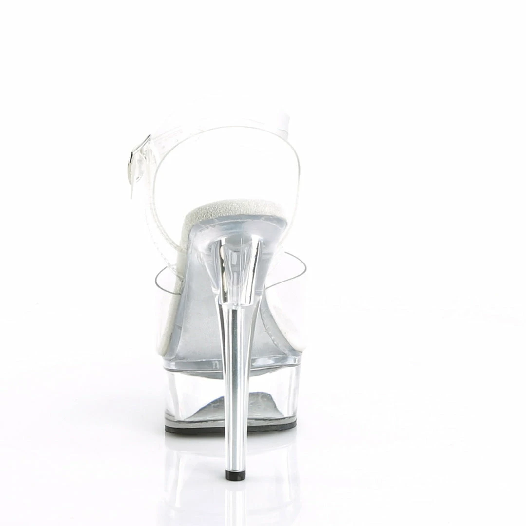 6″ (15.2cm) heel, 1/3/4″ (4.5cm) platform comfort width ankle strap sandal.