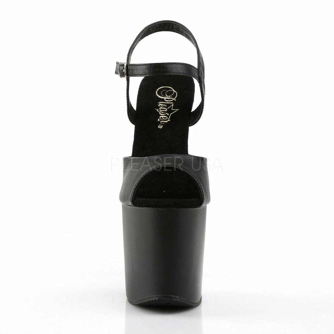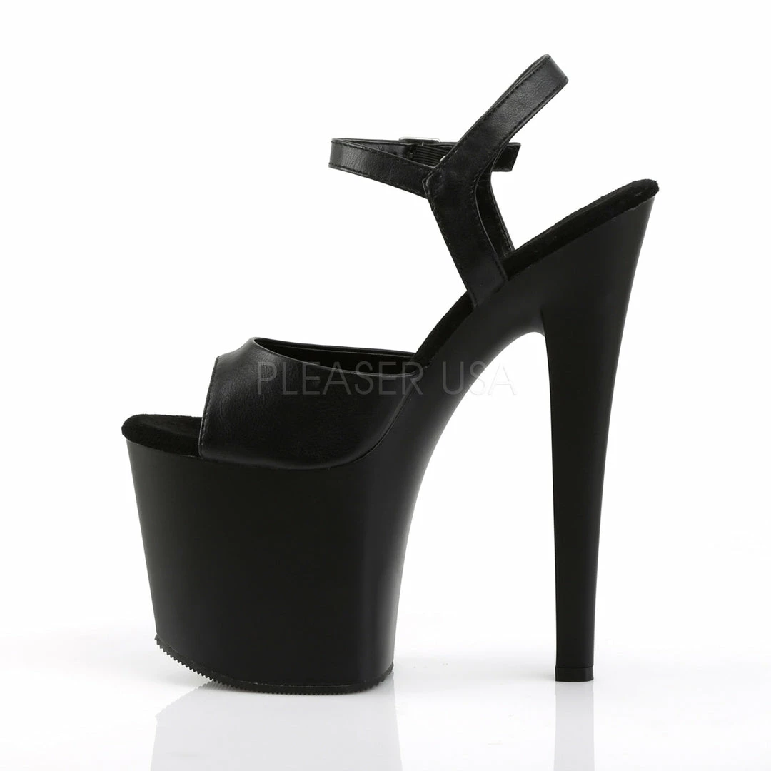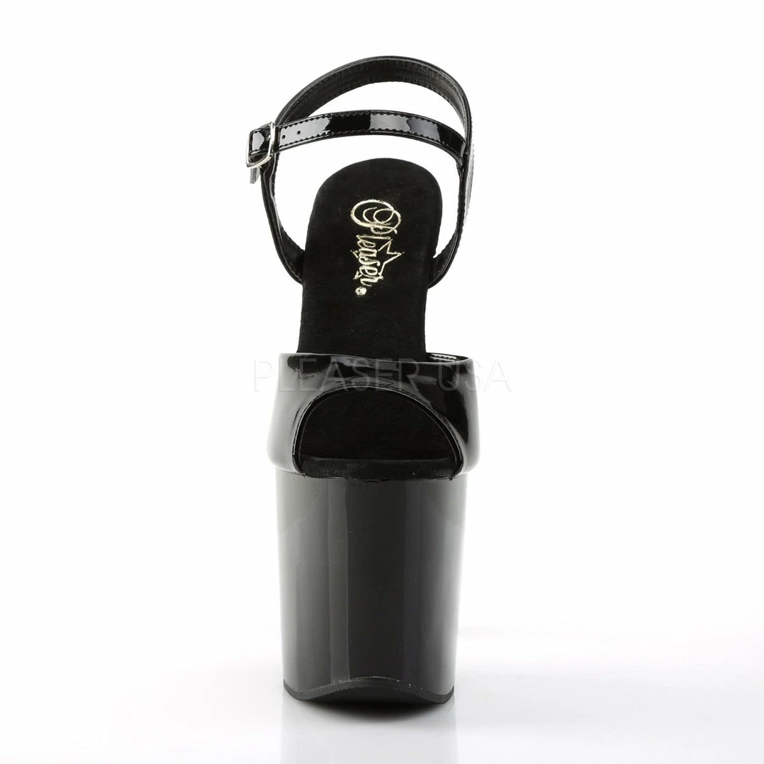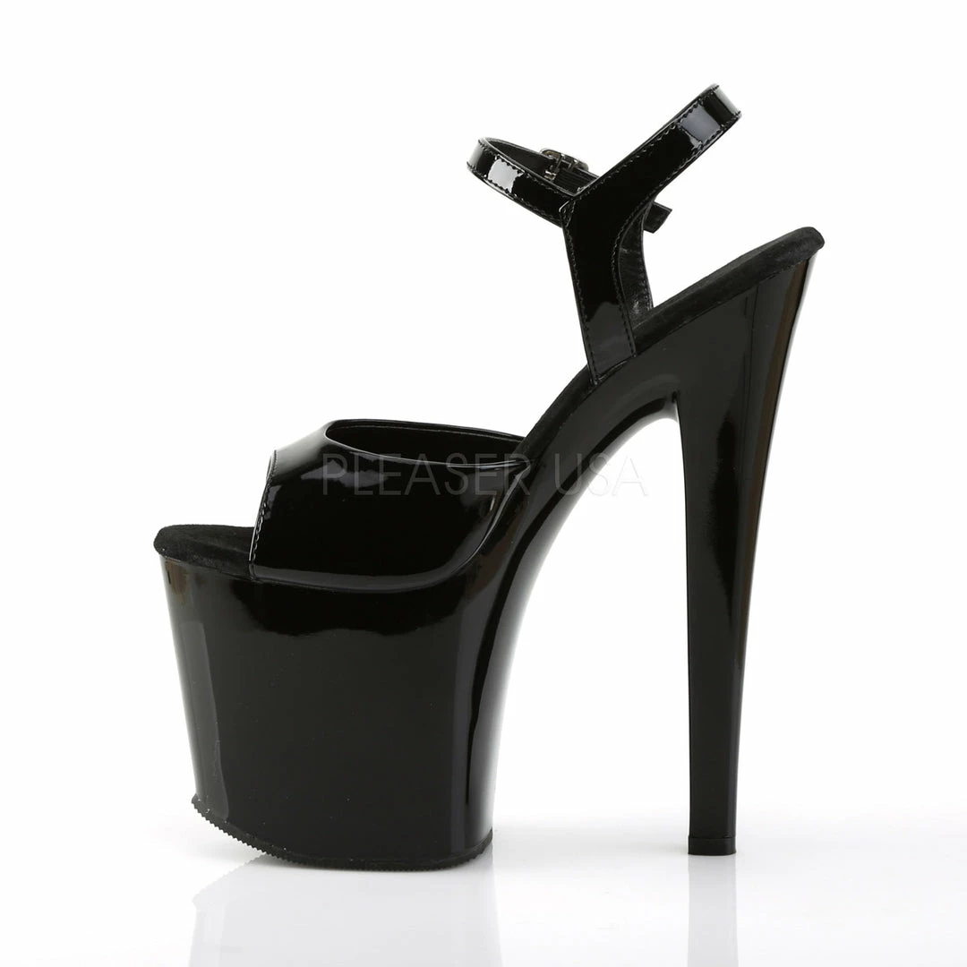 7 1/2″ (19.1cm) heel, 3 1/2″ (8.9cm)Β platform ankle strap sandal.