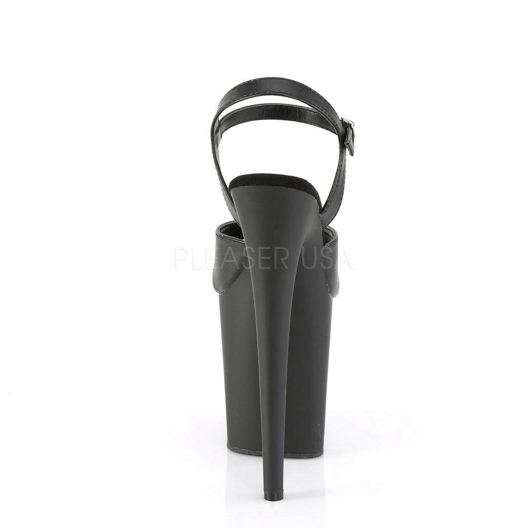 8″ (20cm) heel, 4″ (10cm) platform ankle strap sandal featuring criss cross upper.