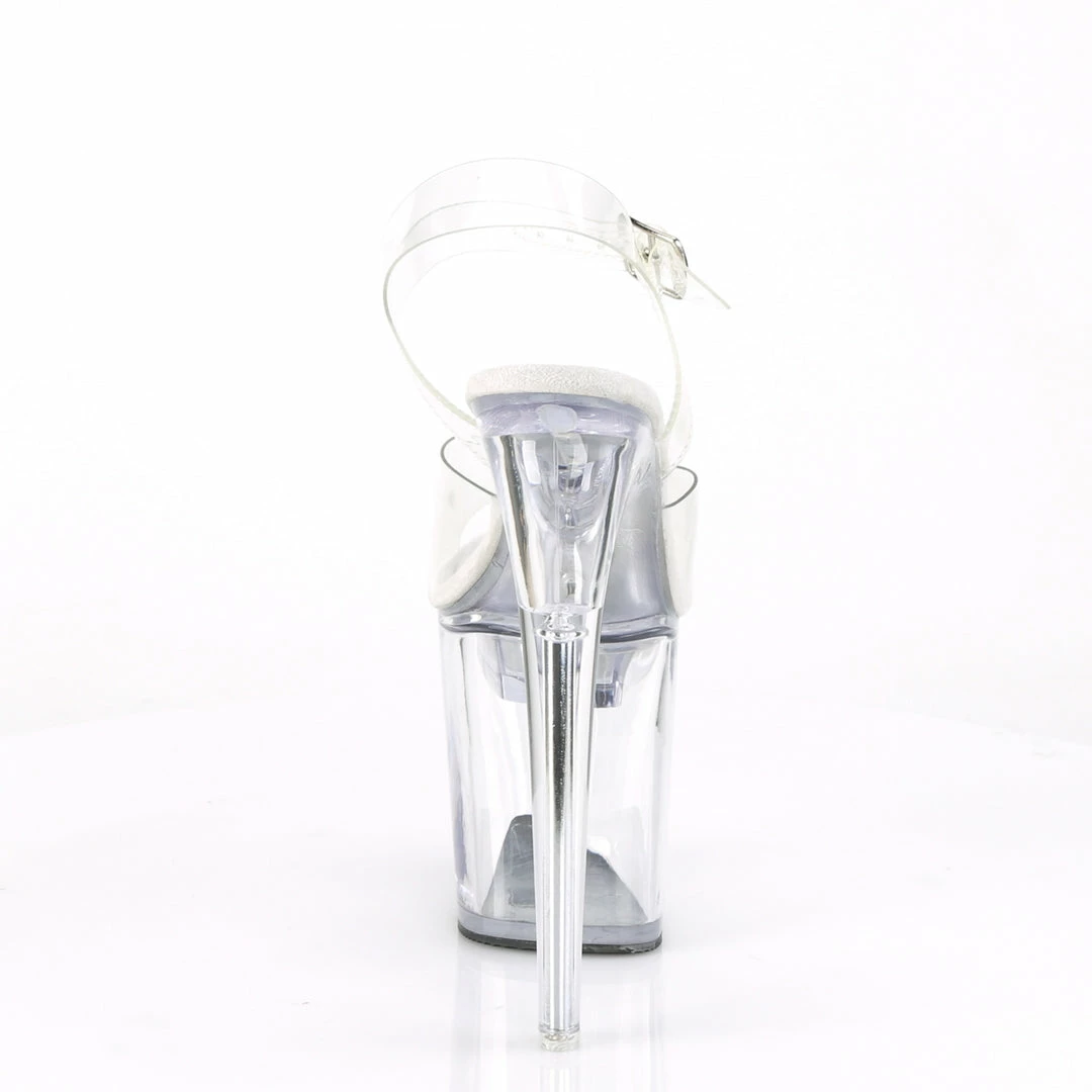 8″ (20cm) heel, 4″(10cm) platform LED illuminated ankle strap sandal featuring multiple static/changing color options. USB chargeable.