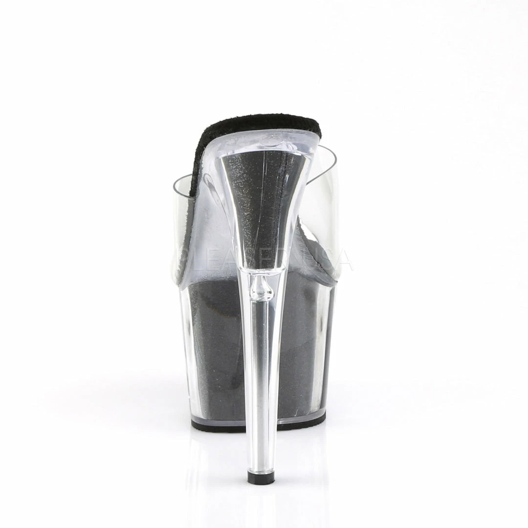 7″ (17.8cm) Stiletto heel,Β glitter filled platform slide.