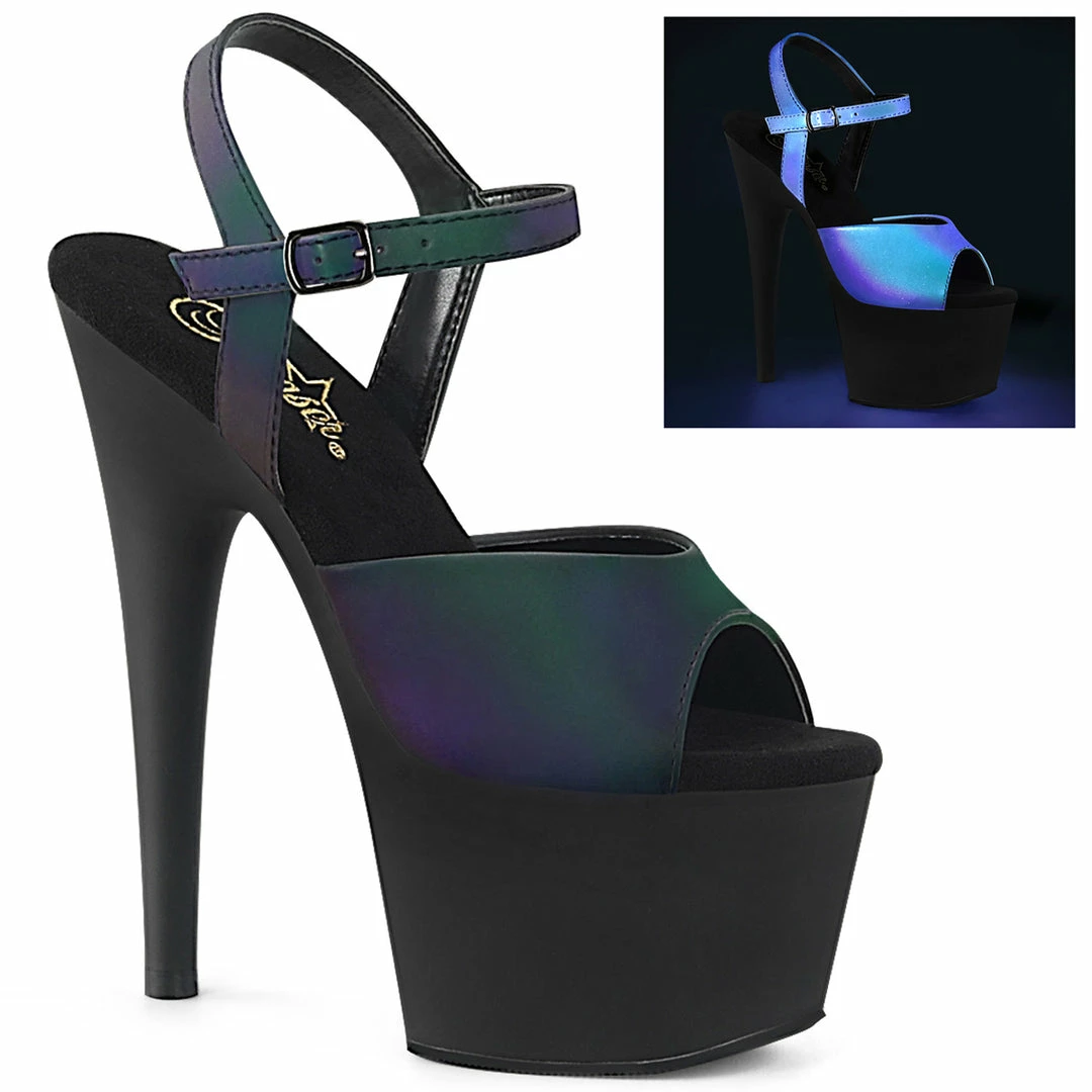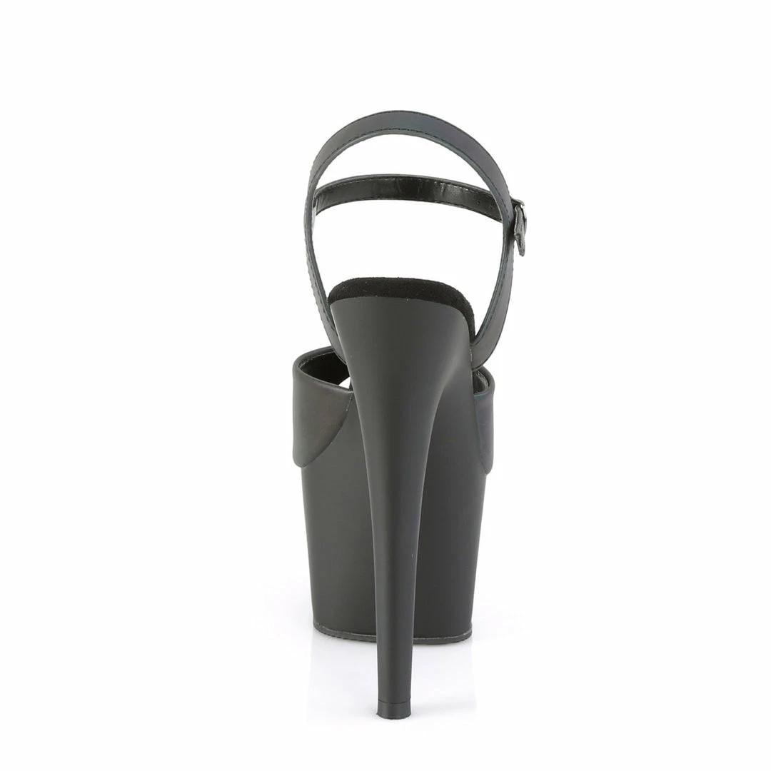 7″ (17.8cm) heel, 2 3/4″ (7cm)Β platform ankle strap sandal.