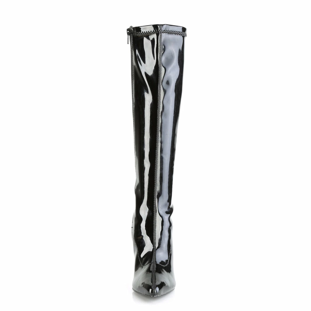 4″ (10.2cm) heel, stretch knee high boot with inside zip closure.