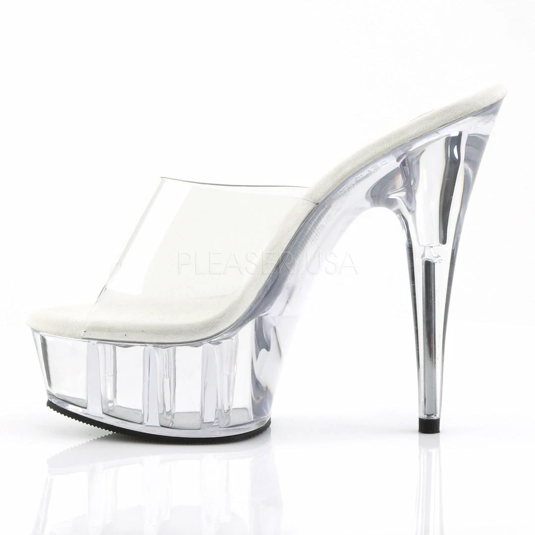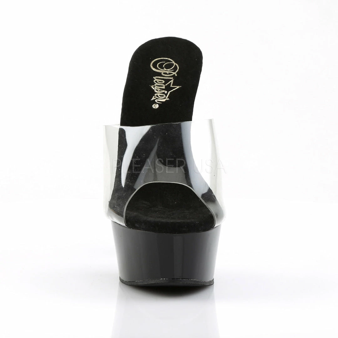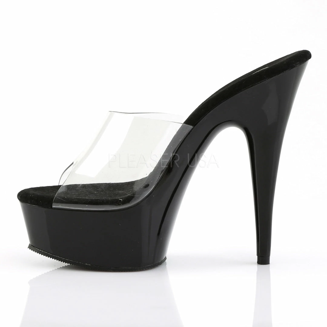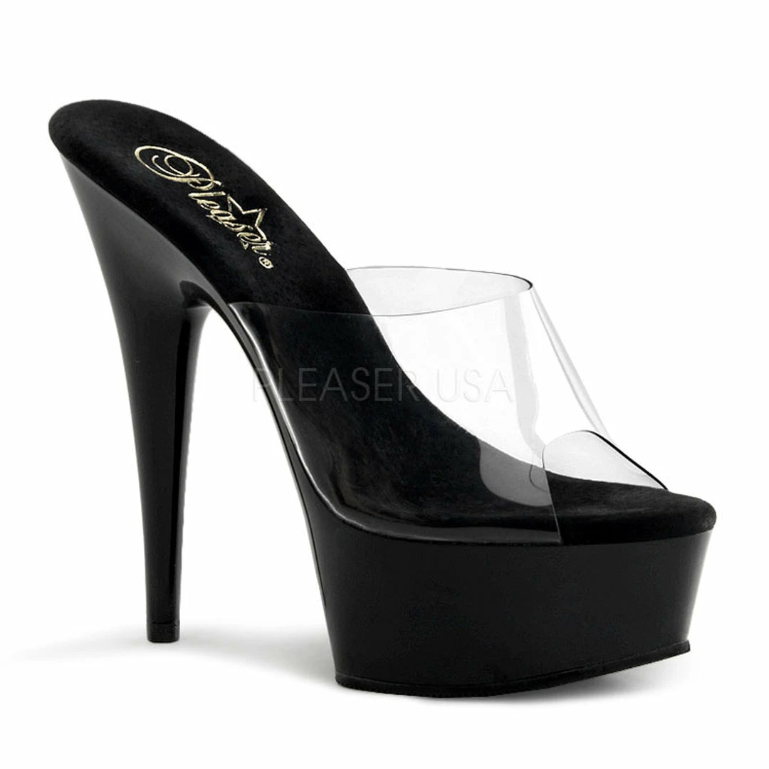 6″ (15.2cm) heel, 1/3/4″ (4.5cm) platform peep toe slide.