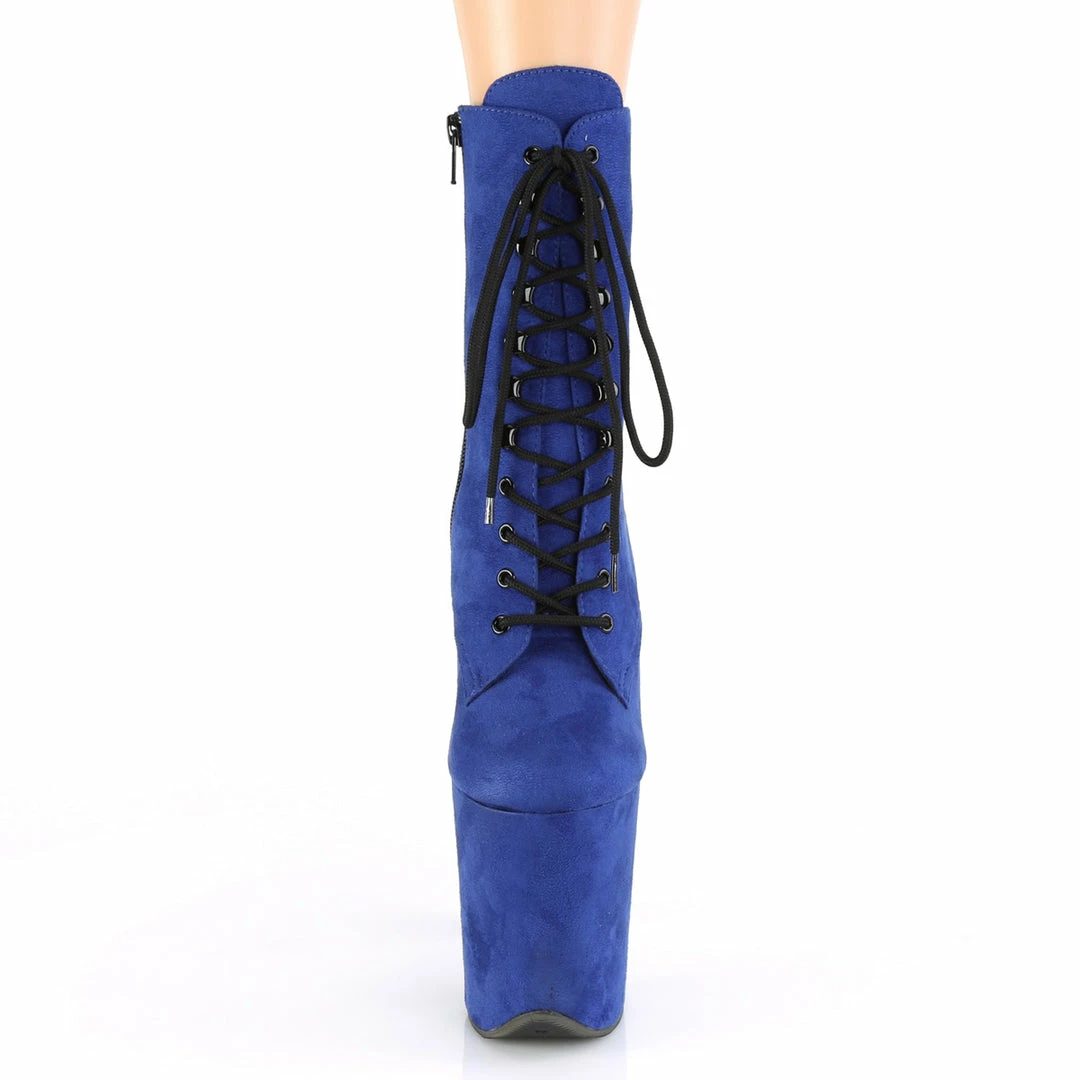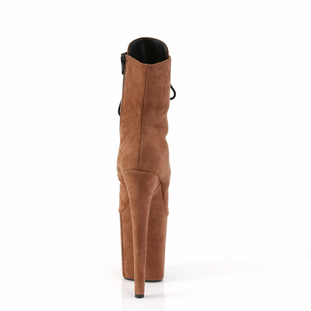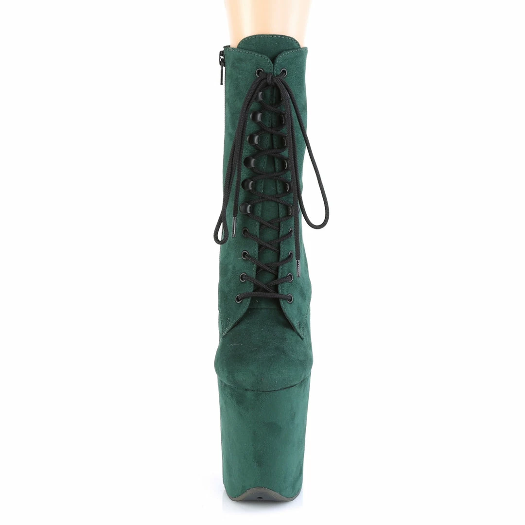 4″ (20cm) heel, 4″ (10cm)Β platform lace up front ankle boot featuring fully wrapped platform bottom and inside zip closure.