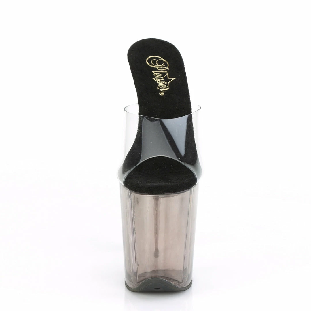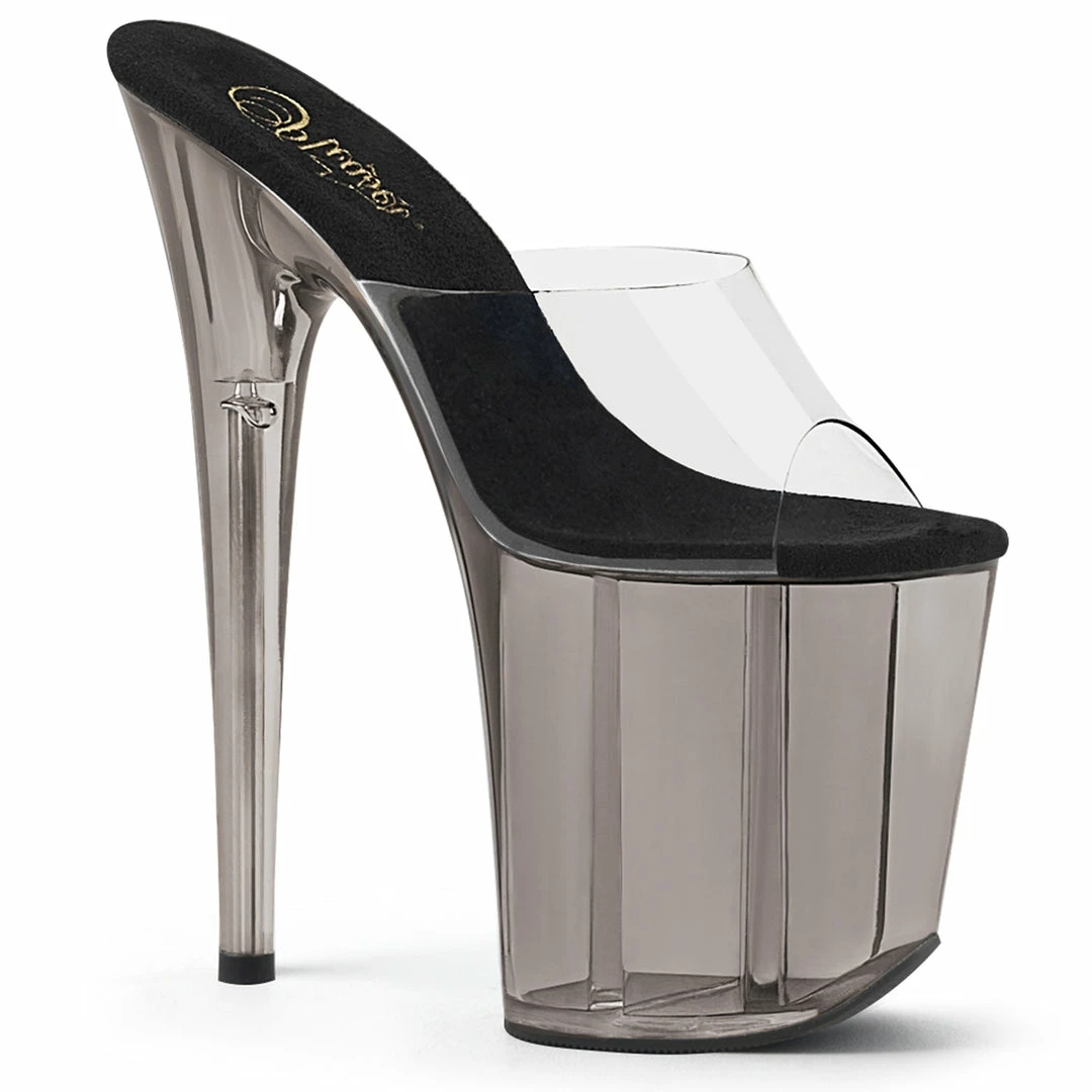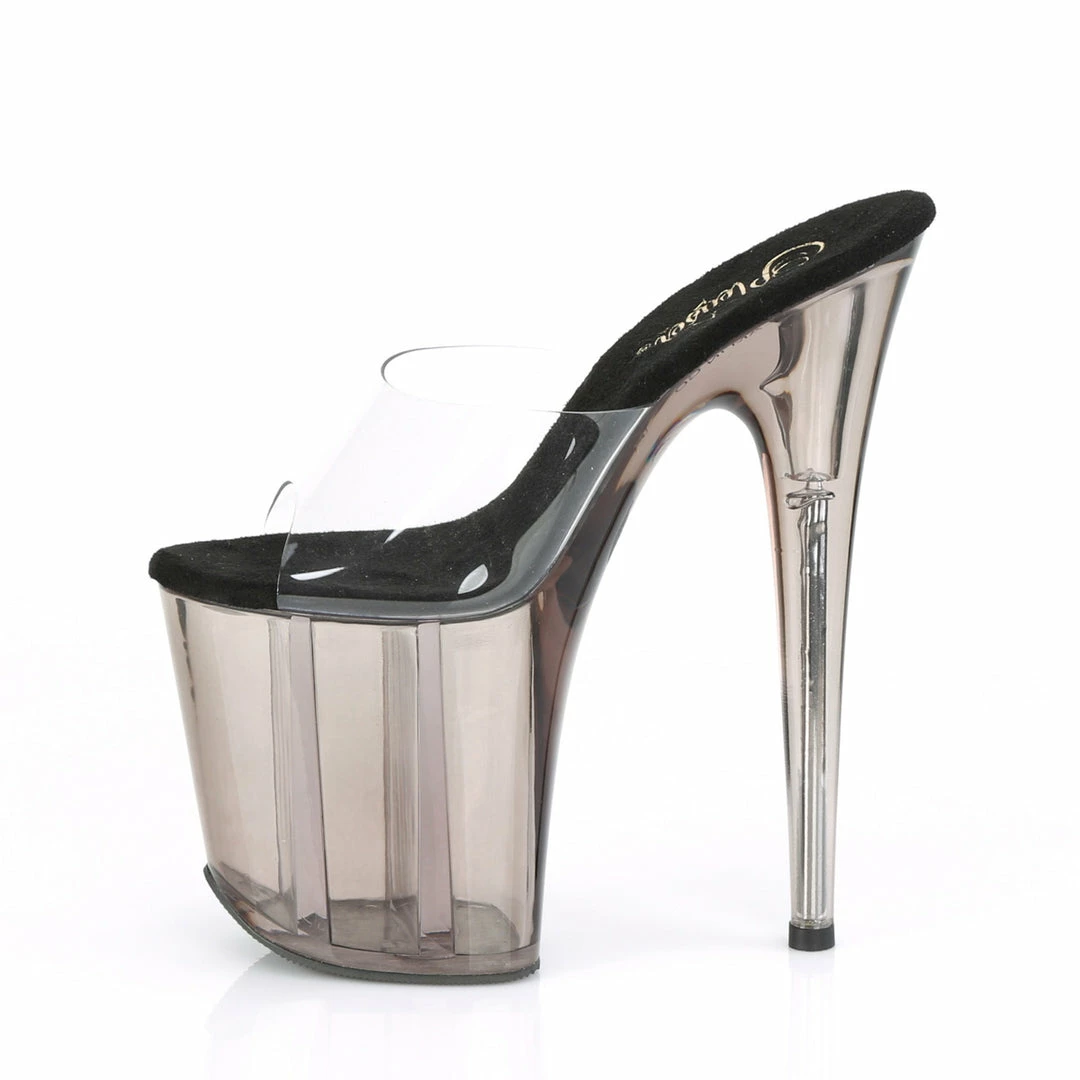 8″ (20cm) stiletto heel, 4″ (10cm) tinted platform slide.