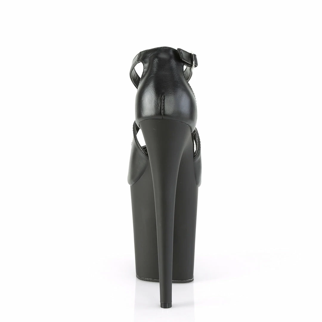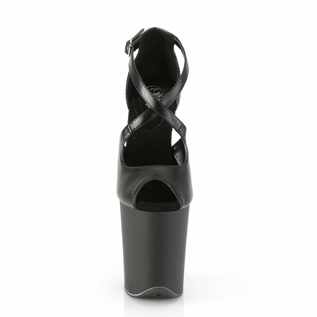 8″ (20cm) heel, 4″ (10cm)Β platform peep toe criss cross sandal.