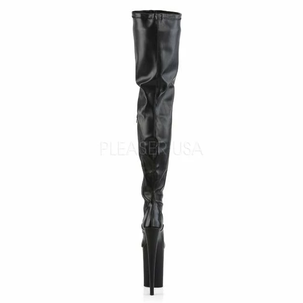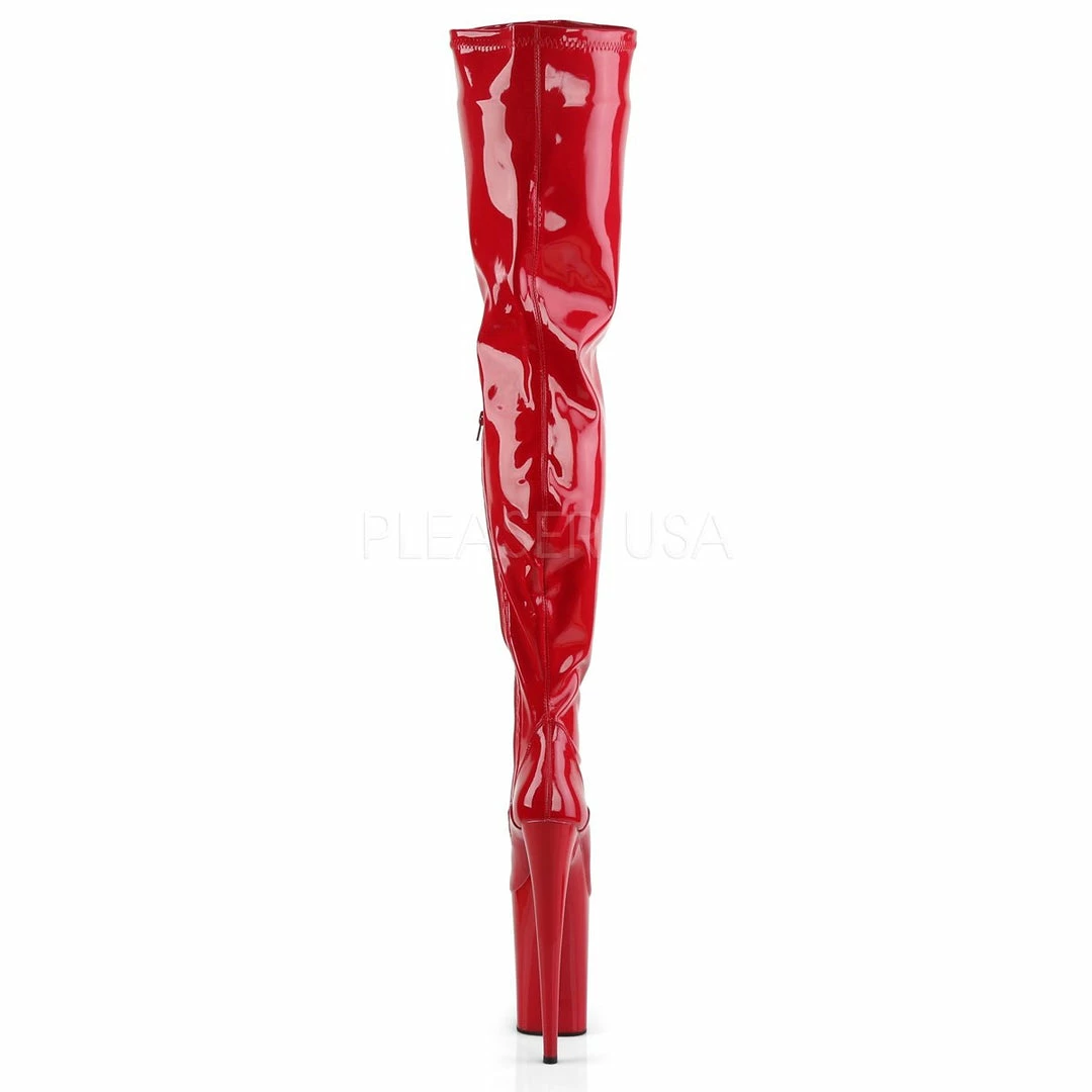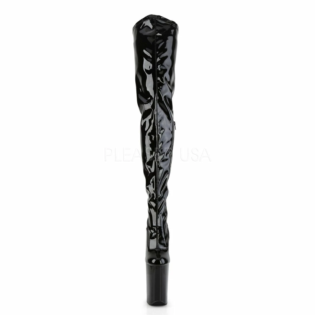 9″ (22cm) heel, 5 1/4 ” (13.3cm) platform stretch crotch boot with full inner side zipper.