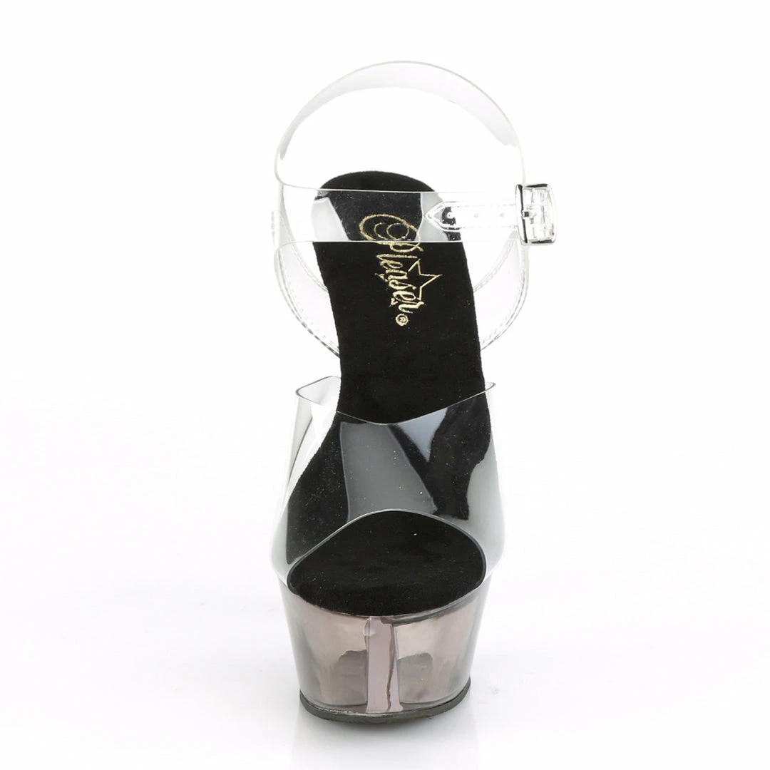 6″ (15.2cm) heel, 1 3/4″ (4.5cm) tinted platform ankle strap sandal.
