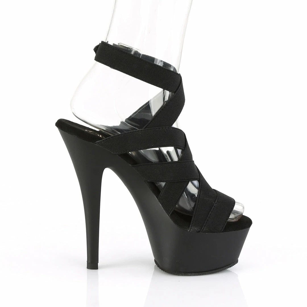 6″ (15.2cm) heel, 1 3/4″ (4.5cm) platformΒ triple criss cross wrap around ankle strap sandal.