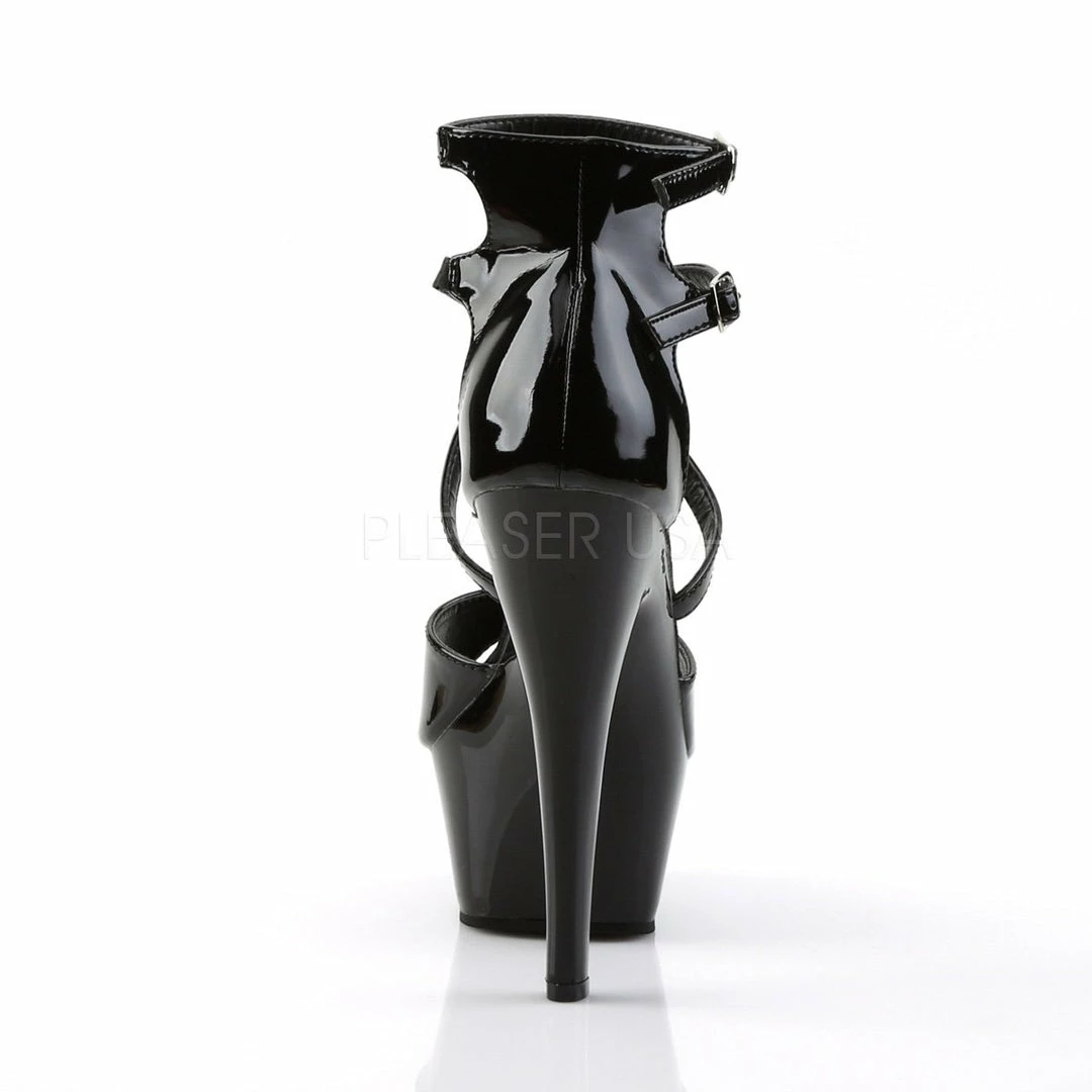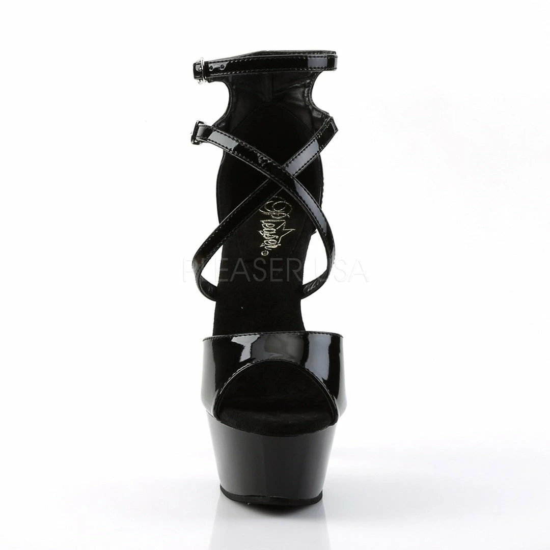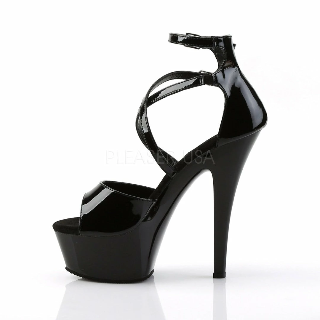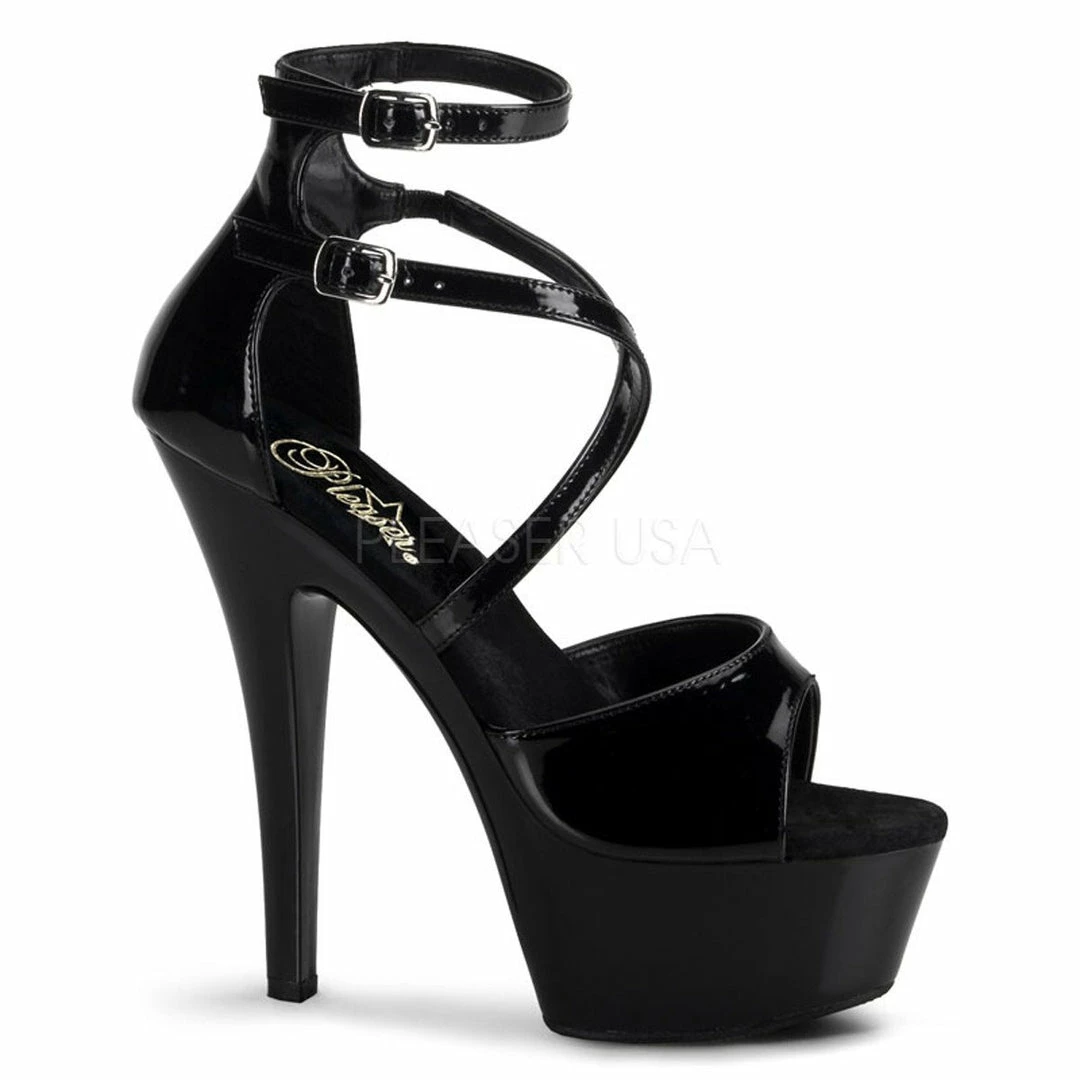 6″ (15.2cm) heel, 1 3/4″ (4.5cm) platform strappy ankle sandal.