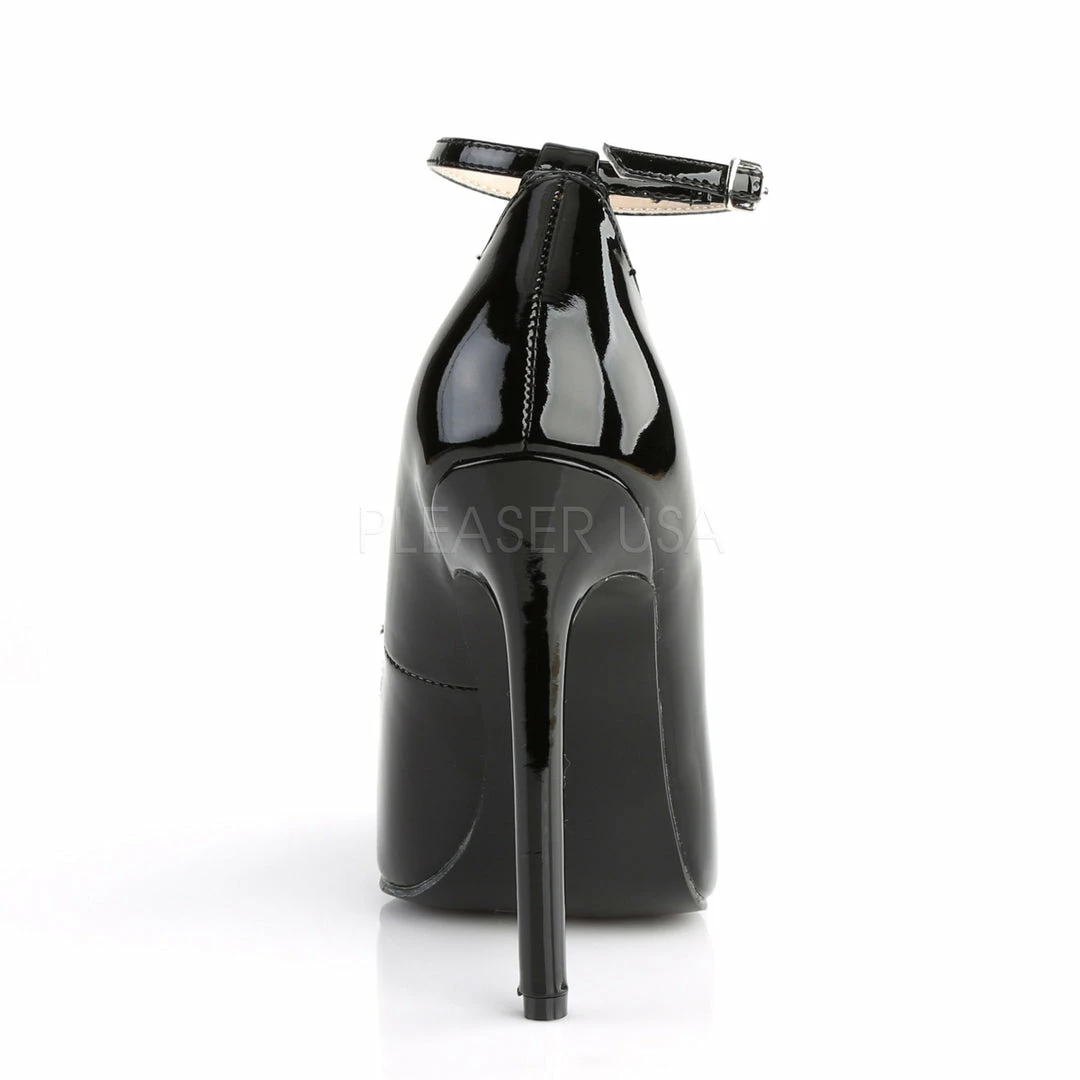 5″ (12.7cm) stiletto heel ankle strap pointed toe pump.
