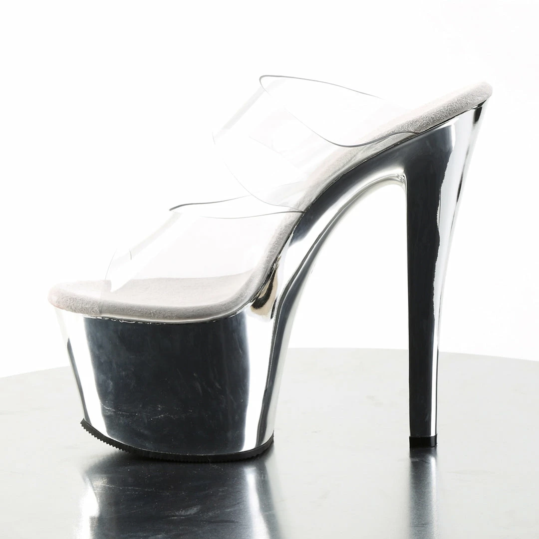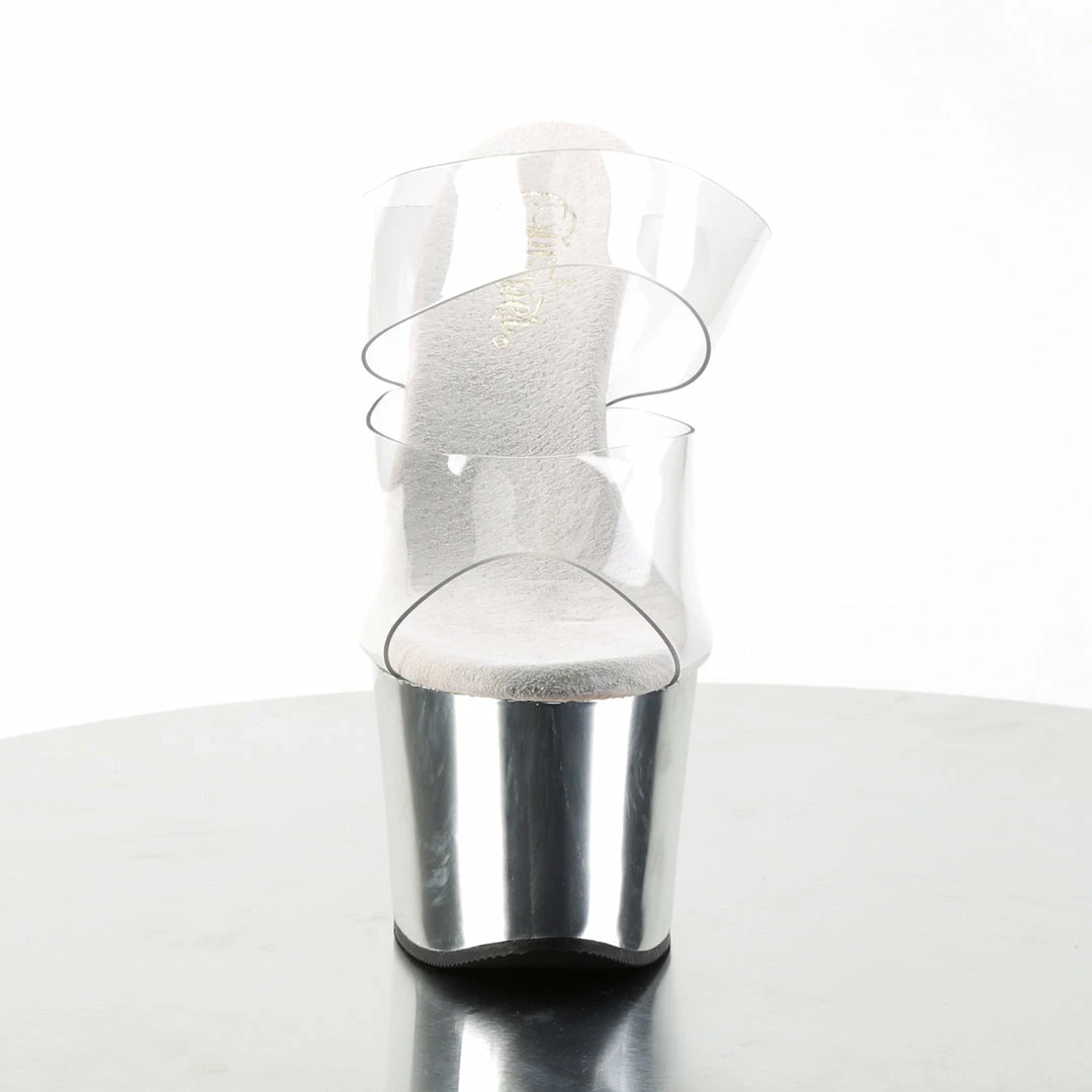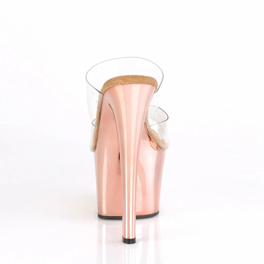 7″ (17.8cm) heel, 2 3/4″ (7cm) platform two band slide.
