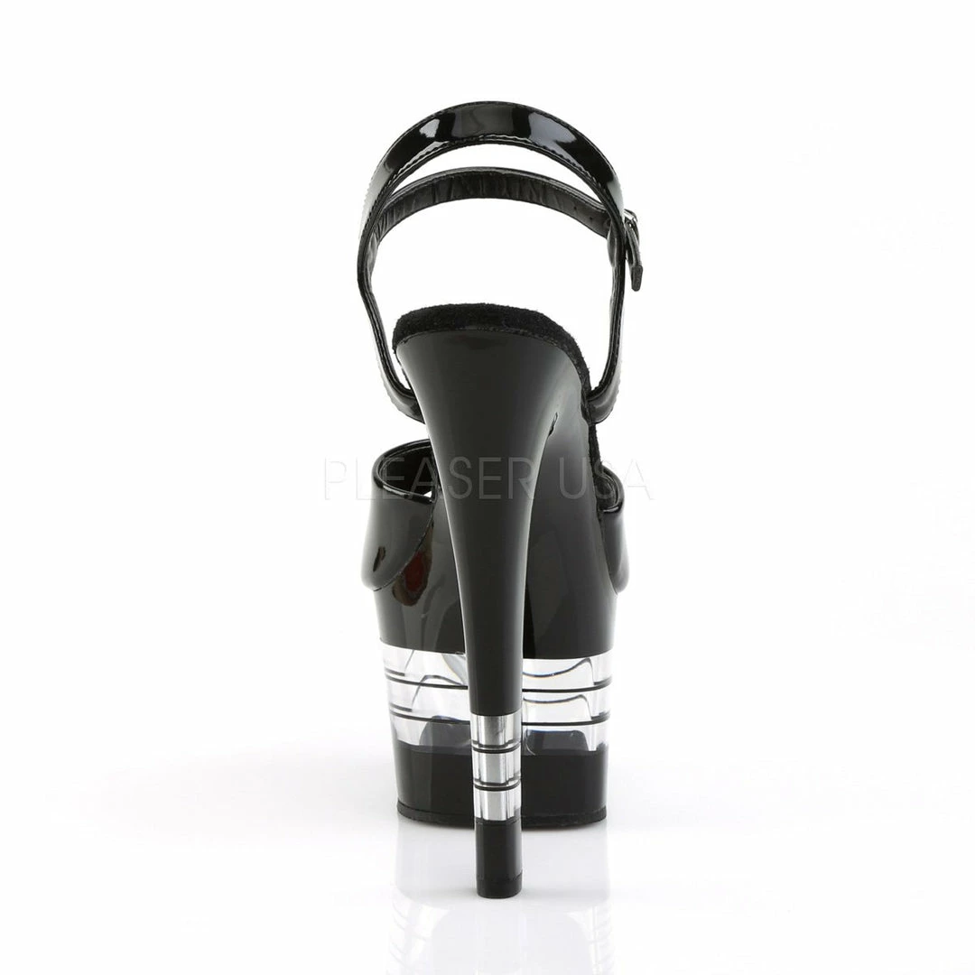 7″ (17.8cm) heel, 2 3/4″ (7cm) lined platform ankle strap sandal.